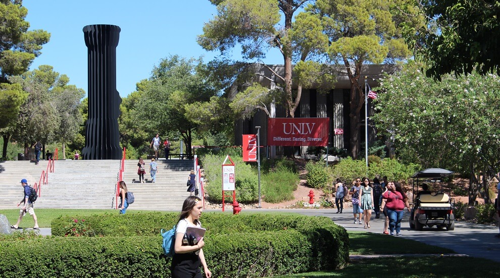 File photo of the University of Nevada, Las Vegas, which is among the nation’s largest Hispanic-serving institutions. Hispanic-serving institutions and other colleges and universities serving students of color will lose funding under a recent U.S. Education Department decision. (Photo by Hugh Jackson/Nevada Current)