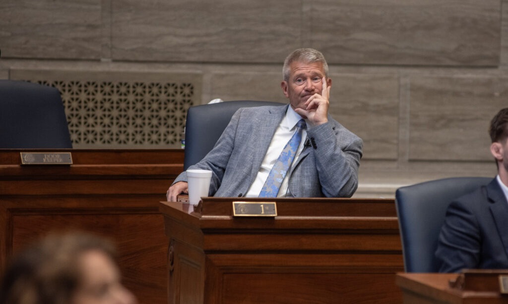 Senate Minority Leader Doug Beck, D-Affton, says Gov. Mike Kehoe should not have deployed the National Guard to assist ICE while the federal government is shut down. (Annelise Hanshaw/Missouri Independent)