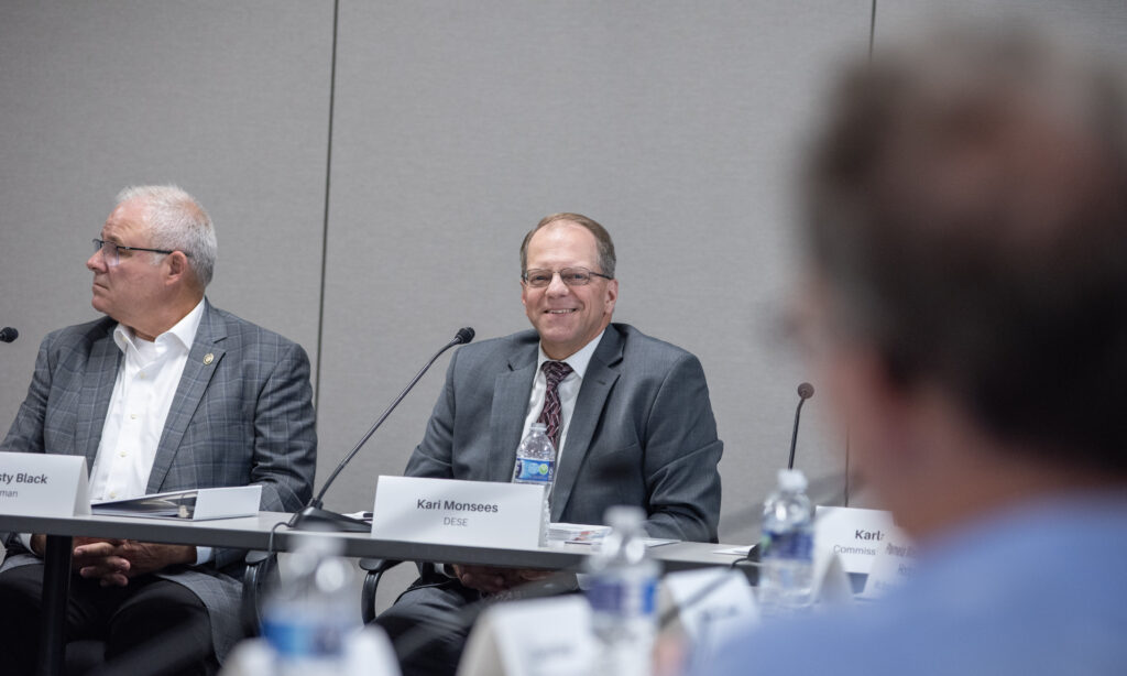 Kari Monsees, the state education department’s former finance chief, discusses the state’s public education funding formula during the Missouri School Funding Modernization Task Force meeting Sept. 9 in Jefferson City (Annelise Hanshaw/Missouri Independent).