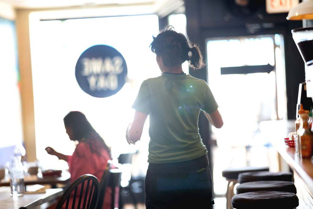 A server waits on customers at a café. The minimum hourly wage for workers will increase in dozens of cities, counties and states in January. (Photo by Scott Olson/Getty Images)