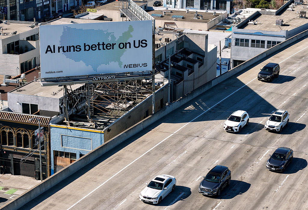 A billboard advertises an artificial intelligence company in San Francisco in September. California is among the states leading the way on AI regulations, but an executive order signed by President Donald Trump seeks to override state laws on the technology. (Photo by Justin Sullivan/Getty Images)