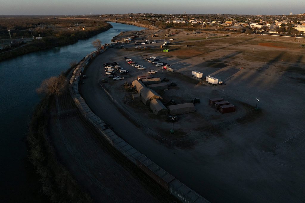 Shelby Park in Eagle Pass, Texas, on the U.S.-Mexico border is occupied by the Texas National Guard in February 2025. Republican states that emphasize border security might benefit from immigration increases since 2020 because higher population translates to political power. (Photo by Eli Hartman for The Texas Tribune)