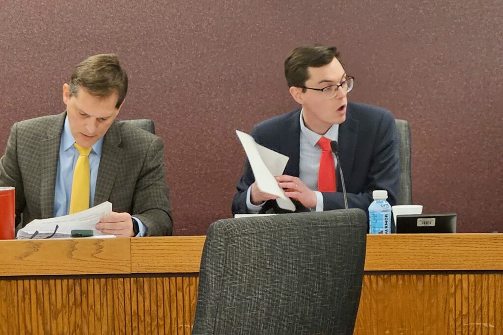 State Rep. Dirk Deaton, R-Seneca and chairman of the House Budget Committee, explains his spending proposals during a Monday hearing. (Rudi Keller/Missouri Independent)