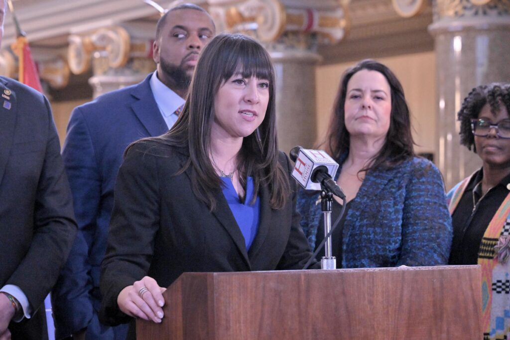House Minority Leader Ashley Aune, a Kansas City Democrat, says she is trying to convince more Democrats to help flip GOP seats in the Missouri House (Tim Bommel/Missouri House Communications).