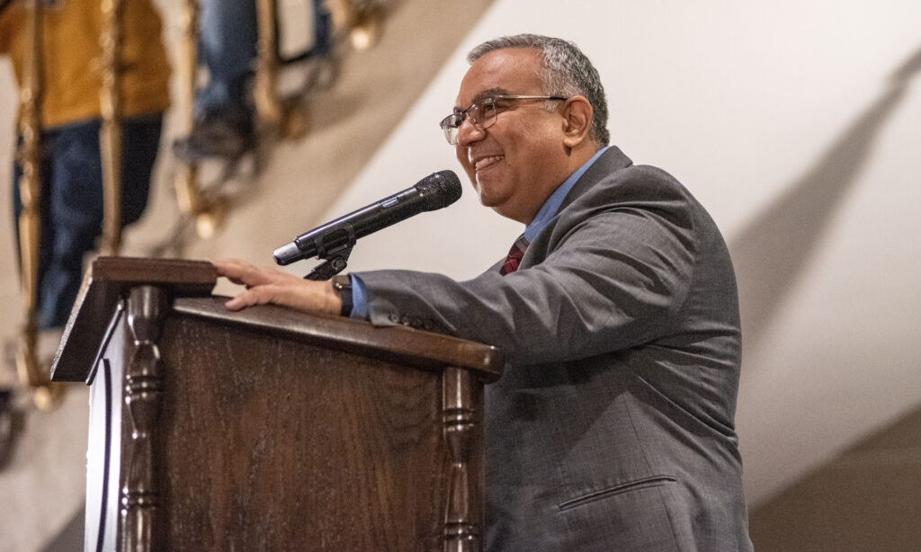 State Treasurer Vivek Malek speaks about the MOScholars program during a rally in the Missouri State Capitol Feb. 26, 2025 (Annelise Hanshaw/Missouri Independent).